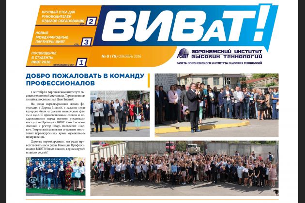 Вышел первый в этом 2016/17 учебном году выпуск газеты «ВИВаТ!». По традиции мы рассказываем о самом главном и интересном, что произошло в вузе за лето и в первый осенний месяц.