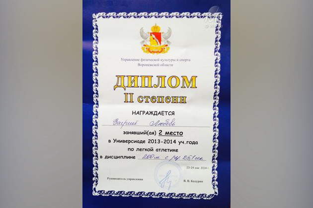 Первое место в универсиаде вузов по легкоатлетическому кроссу на дистанции 400 м.