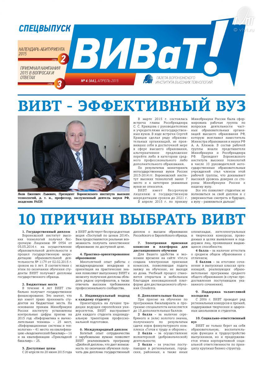 Вышел спецвыпуск газеты «ВИВаТ!», посвященный приемной кампании 2015.